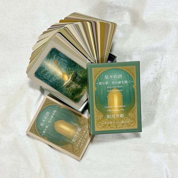 『星々の詩』シリーズは、星・祈り・魂の旅をテーマにした詩画オラクルカードです。今後2章まで発行される予定のカードシリーズの、記念すべき第一弾。