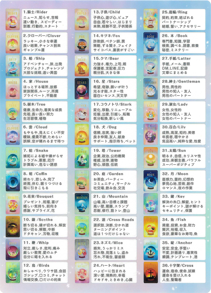 ルノルマンカード占いがはじめての人や、占いプロの方の記憶整理にもピッタリです♪