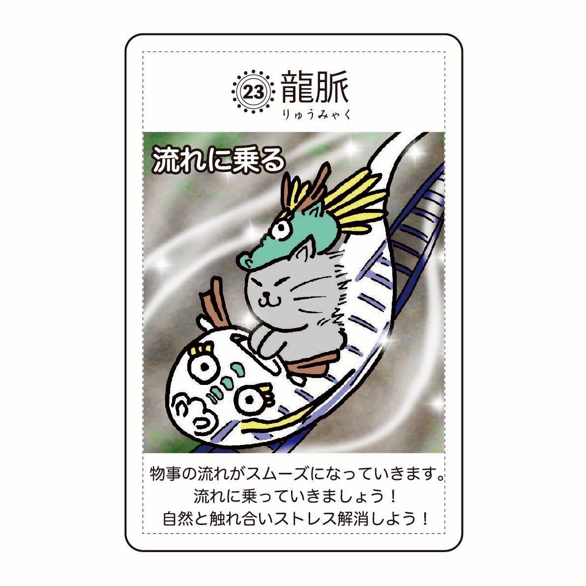 カードの中に登場する「にゃんりゅう」たちは、金や銀などの色の龍や、自然に関係するもの、神社やお寺やその教えに関係するもの、私たちの生活の一部として存在していて、日常の会話やことわざとして使われているものなどで、それぞれがとても古い歴史を背景に誕生してきた龍たちです。