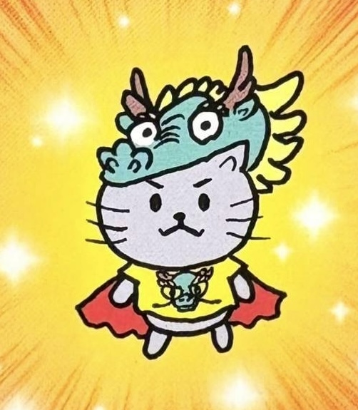 ここに登場する「にゃんりゅう」は、猫の顔に龍のキャップを被って、猫と龍が合体した、とてもユニークでかわいらしいキャラクターのこと。