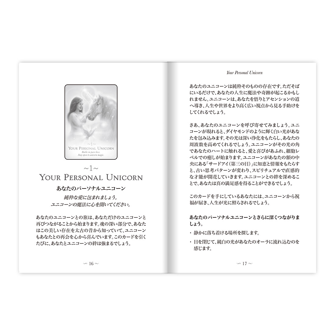 神秘的なアートワークは、まるでユニコーンが心に直接語り掛けてくるように、あなたのリーディングをより一層深めてくれるでしょう。