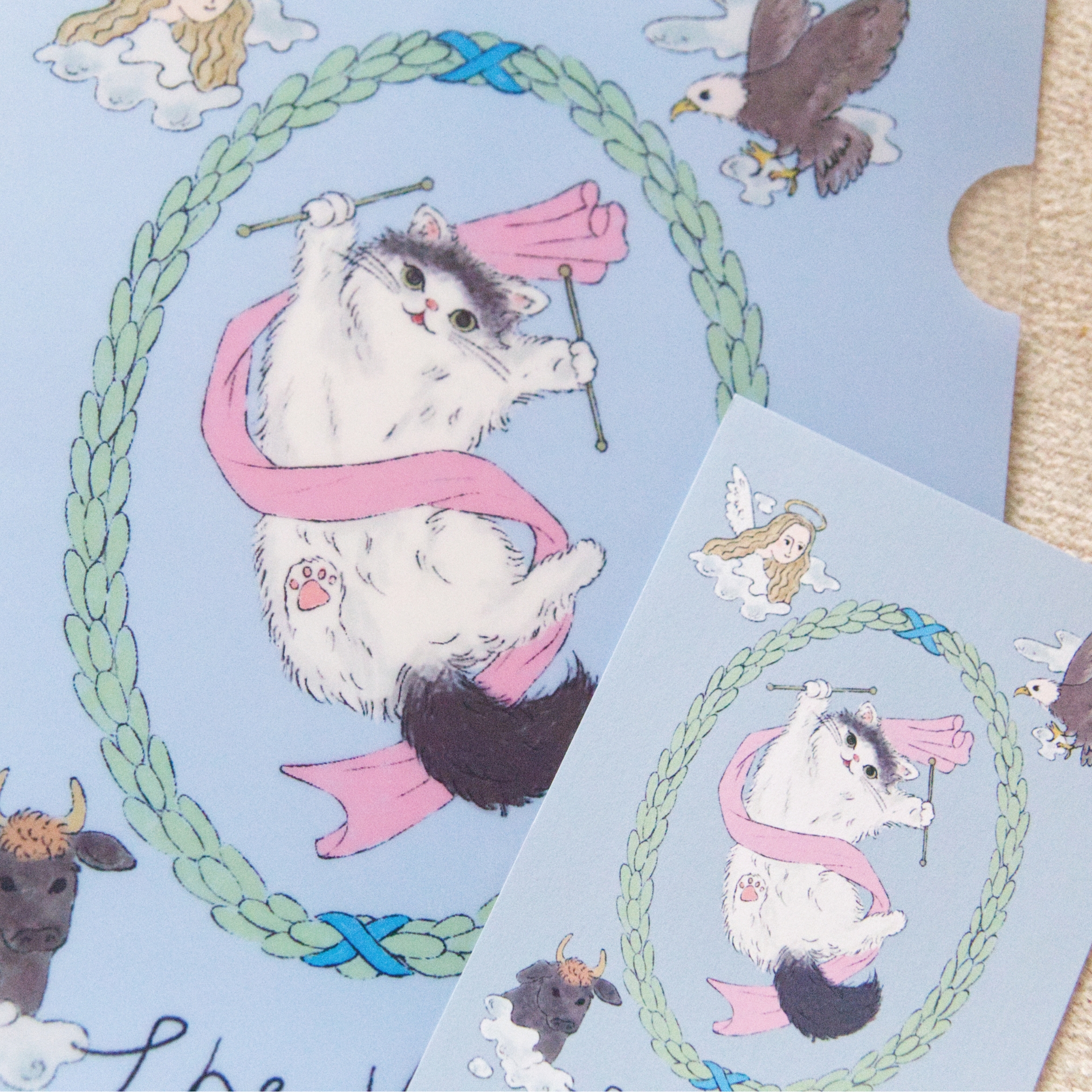 猫ちゃんがタロットの「世界」の絵柄を全力で表現したクリアファイル