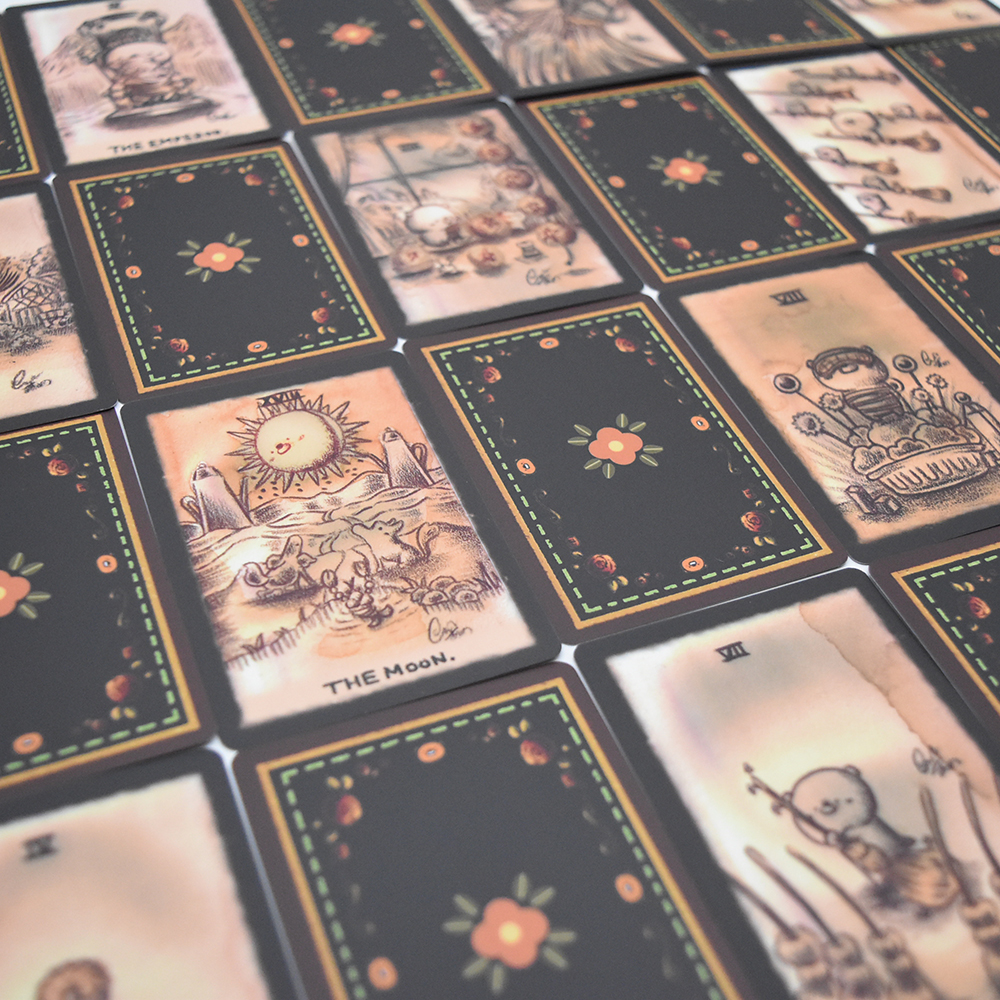 タロットで最も多く使われているウェイト版に準拠しており、 オリジナルキャラクター「くまっち」が 全てのアルカナの絵柄に扮したタロットフルデッキです。