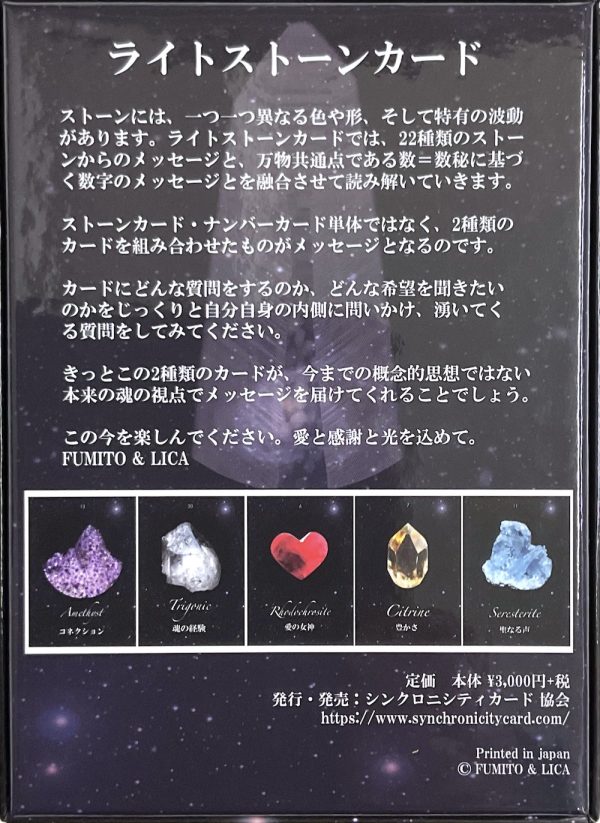 このカードは、22種類のストーンからのメッセージと、万物共有である『数』=数秘に基づく数字のメッセージを融合させて読み解きます。