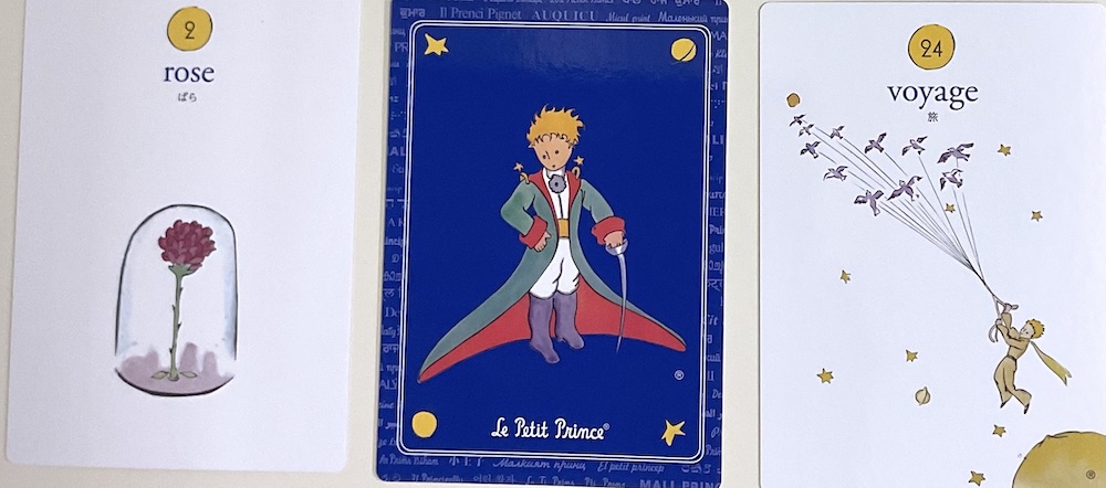 この『星の王子さまオラクルカード』は、それらの珠玉の言葉たちを物語の中から拾い上げ、カードの形で表現したものです。王子さまが地球にたどり着くまでに色々な星を巡り、そこで出会った人たちから何かを学んだように、自らの人生を旅する私たちも、このカードと出会うことで、大切な何かに気付くことができるのではないでしょうか?