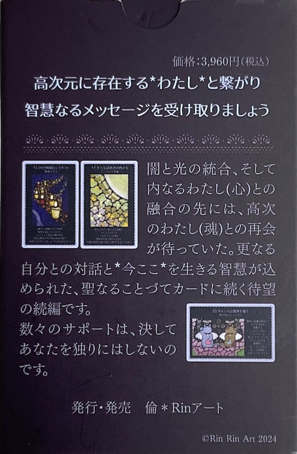 ■商品仕様 内容:カード36枚+解説用紙1枚 カードサイズ:H89×W58mm ボックスサイズ:H90×W60×D13mm 著者:倫*Rinアート